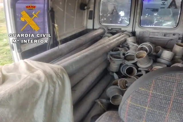 Seguidamente, se procedió a identificar al conductor y una vez inspeccionado el interior del vehículo, la Guardia Civil encontró diversos tubos y cabezas de tubería de riego y varias herramientas. Todo ello oculto con sábanas y valorado en unos 3.000 euros aproximadamente. El conductor del vehículo no logró dar una explicación coherente de la procedencia de los efectos, y además, no tenía ningún documento que acreditase su procedencia, por lo que se le detuvo por un delito de apropiación indebida, quedando el vehículo y material sustraído a disposición judicial. En estos momentos se están realizando gestiones para identificar a los propietarios de los efectos sustraídos.