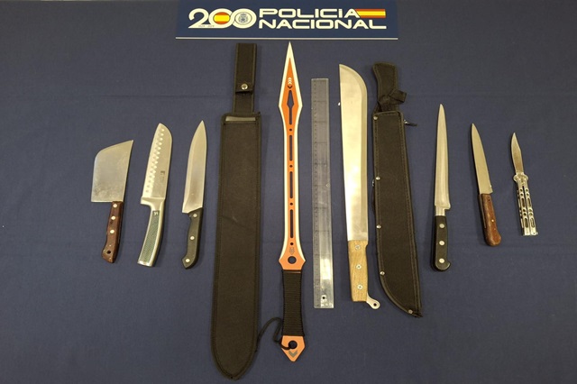 La Policía Nacional detuvo el pasado miércoles 29 de enero a cinco varones a los que se les imputan los delitos de amenazas graves y tenencia ilícita de armas tras un altercado con machetes en Valladolid. Los arrestos se produjeron en el momento en que los cinco detenidos perseguían a un joven provistos de multitud de estas armas blancas con la intención de agredirle. La rápida actuación de los indicativos de seguridad ciudadana de Policía Nacional evitó que la agresión se llegara a consumar, y detenían a los varones, todos ellos mayores de edad.