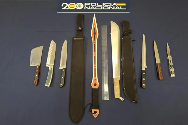 Algunas de estas armas superaban los 50 centímetros de longitud de hoja. Se han incautado dos machetes de grandes dimensiones y otras seis armas blancas, incluida una navaja tipo 'mariposa'. Las investigaciones llevadas a cabo por los agentes del Cuerpo Nacional de Policía han conseguido acreditar la pertenencia de al menos cuatro de los cinco detenidos, al grupo juvenil violento de inspiración latina de los Trinitarios. Desde el incidente ocurrido en un locutorio en enero de 2024, la Policía Nacional estrechó la vigilancia sobre los individuos afines al grupo Trinitarios, por la posibilidad de que ejecutaran alguna acción como venganza a lo ocurrido un año antes, pudiendo estar la motivación de los hechos basada en la profunda animadversión hacia los miembros de un grupo juvenil de ideología contraria y del que la víctima es uno de los miembros más notables.