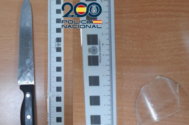 Los agentes accedieron al portal y se entrevistaron con el varón herido, quien manifestó haber sido agredido con un cuchillo por su compañero de piso tras una discusión relacionada con el alquiler del domicilio que comparten. Tras llamar a la puerta del domicilio, los policías fueron recibidos por otro varón quien se encontraba acompañado de su esposa. Este manifestó que permitió convivir al otro varón en su vivienda por no tener este lugar donde residir. Sin embargo, tras el regreso de su mujer, le solicitó que abandonara el domicilio, a lo que se negó reiteradamente, generando graves problemas de convivencia y comportamientos violentos hacia ellos y los vecinos. Según su versión, sobre las 19.00 horas de ese mismo día, tras recriminarle que los vecinos se habían quejado de su actitud, el otro varón comenzó a proferir amenazas de muerte e insultos, llegando a golpearle con un vaso de cristal, causándole cortes en espalda, brazos y manos. Ambos cayeron al suelo, momento en el que, según afirma, su compañero se golpeó la cabeza, negando haberle agredido con ningún arma blanca. Durante la inspección del domicilio, los agentes localizaron dos cuchillos de grandes dimensiones sobre la encimera de la cocina.