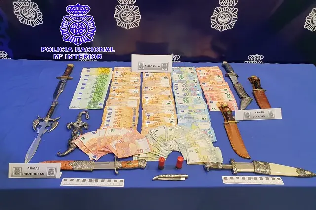 En Medina, durante el registro realizado en estas viviendas y autorizado por el Juzgado Número Uno de esta localidad, se intervinieron diversas armas, entre ellas varias navajas, un machete, una pistola simulada, un bastón, una táser y una carabina de aire comprimido, munición, teléfonos móviles, diverso material informático, tarjetas bancarias y telefónicas, dos vehículos y 1.200 euros. Los detenidos formaban parte de una organización criminal debidamente estructurada y jerarquizada donde cada uno de ellos tenía un cometido asignado y operaban en Medina del Campo y localidades cercanas. El cabecilla era O.P.S. y lideraba la organización teniendo experiencia en el tráfico de estupefacientes debido a que tiene antecedentes por hechos similares.