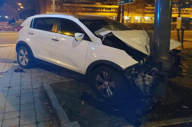 Empotra su coche contra una señal informativa en la Avenida Salamanca