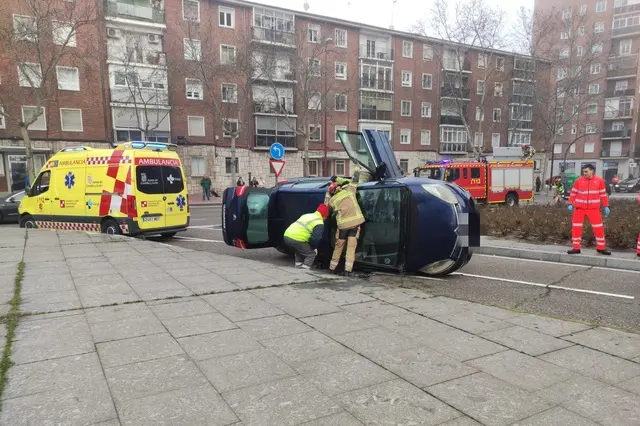 Espectacular vuelco de un turismo en el que viajaban tres menores en el Paseo Zorrilla de Valladolid