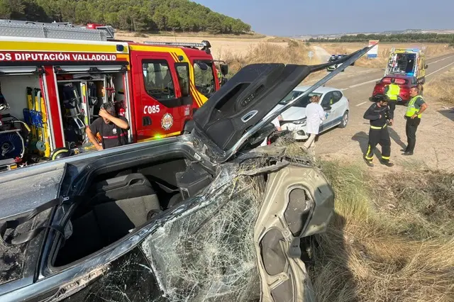 El 1-1-2 dio aviso de este accidente al Centro Coordinador de Urgencias de Emergencias Sanitarias de Sacyl, que envió un helicóptero medicalizado y una ambulancia soporte vital básico. Además, se informó sobre este siniestro vial a la Guardia Civil de Tráfico de Valladolid y a los Bomberos de Diputación que enviaron una dotación al lugar. Ya in situ, los servicios de emergencia comprobaron como una mujer de unos 27 años se encontraba atrapada en el interior del turismo, por lo que tuvo que ser excarcelada por el Cuerpo Provincial de Bomberos, y seguidamente fue trasladada en helicóptero al Hospital Clínico Universitario de Valladolid, donde se encuentra ingresada evaluando las heridas por este accidente en Villafuerte.