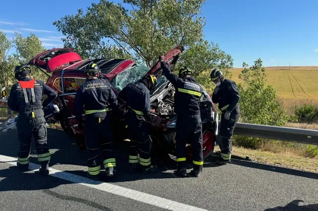 Dos personas han tenido que ser excarceladas este domingo por los Bomberos de la Diputación de Valladolid tras volcar con su turismo en la A-6 a la altura de la localidad vallisoletana de Mota del Marqués. El accidente se produjo en la tarde de este domingo 16 de junio a las 17.38 horas en la citada autovía en el kilómetro 201, en sentido Madrid. La sala de operaciones del 112 de Castilla y León recibió una llamada que alertaba del aparatoso siniestro vial y solicitaba asistencia para los ocupantes del vehículo, ya que se encontraban atrapados y no podían salir por sus propios medios.