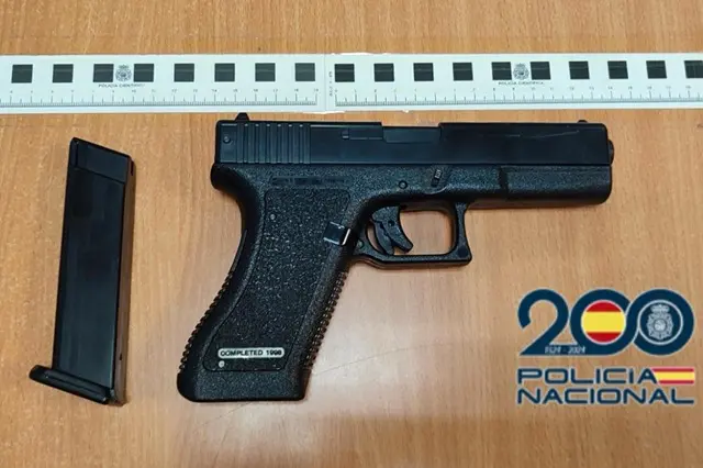 Momentos después, el varón solicitaba que se la devolviera, una vez que el requirente había bebido ya de ella. En ese momento, el varón se levantó la camiseta dejando ver una pistola en la parte delantera de su pantalón y sin mediar palabra le golpeaba con la culata en la cabeza. El arma fue intervenida y se remitió a la Brigada Provincial de Policía Científica con el fin que fuera analizada, resultando ser ésta un arma de fuego simulada. Una vez concluidas todas las gestiones pertinentes y tras dar traslado a la Autoridad Judicial el detenido fue puesto en libertad.
