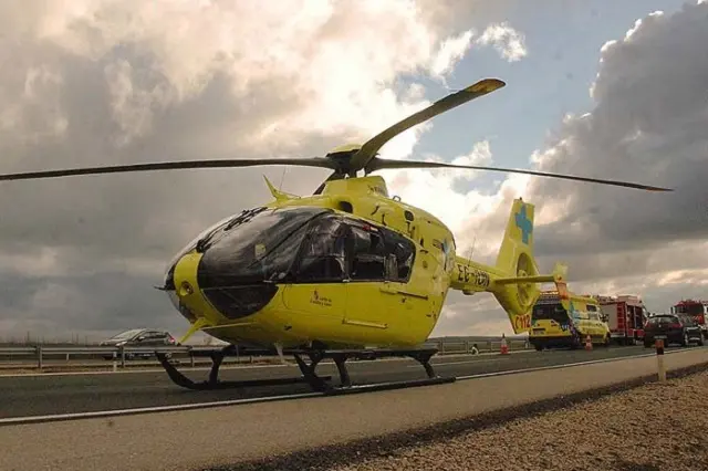 La sala de operaciones del 1-1-2 da aviso del incidente a la Guardia Civil de Tráfico de Valladolid y a Emergencias Sanitarias - Sacyl, que envía una ambulancia soporte vital básico, un equipo médico de Medina de Rioseco y un helicóptero medicalizado.