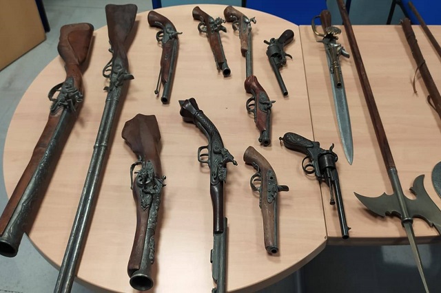 Por estos motivos, los agentes de la Policía Local levantaron un acta-denuncia contra dicho vendedor del mercado instalado en el aparcamiento del Estadio José Zorrilla junto al Recinto Ferial. Los agentes intervinieron las armas, que aparentemente eran antiguas aunque se desconoce su estado.