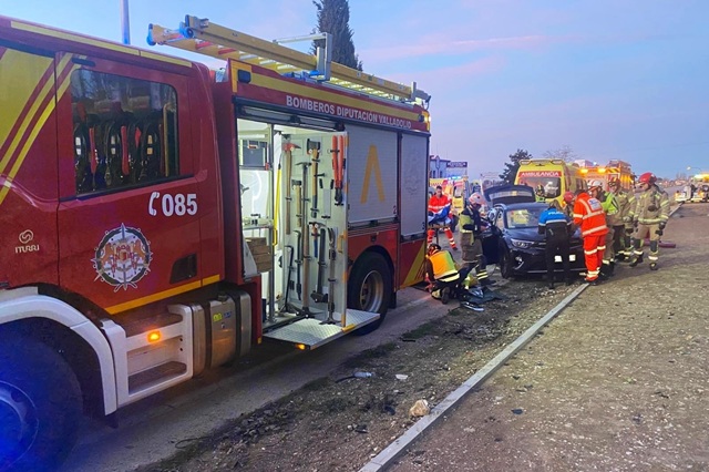 La sala de operaciones del 1-1-2 dio aviso del incidente a la Policía Municipal de Valladolid, al Cuerpo Nacional de Policía, a los Bomberos de la Diputación de Valladolid, a los Bomberos de Valladolid y al Servicio de Emergencias Sanitarias de Sacyl que envió un equipo médico y dos ambulancias de soporte vital básico para atender a los dos conductores heridos. En el lugar, los sanitarios atendieron a dos personas, un varón de 52 años, que fue trasladado en ambulancia, acompañado por el equipo médico al Hospital Universitario Río Hortega de Valladolid, y una mujer de 52 años que fue evacuada también en ambulancia de soporte vital básico al mismo centro asistencial. Durante el seguimiento del incidente, los Bomberos de la Diputación de Valladolid comunicaron que habían intervenido para liberar a los dos conductores.