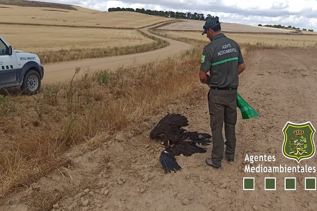 El Servicio 112 alertó a los agentes medioambientales que se desplazaron hasta el lugar para conocer y determinar lo sucedido junto a las circunstancias de la muerte del ave en esta zona de la provincia vallisoletana.