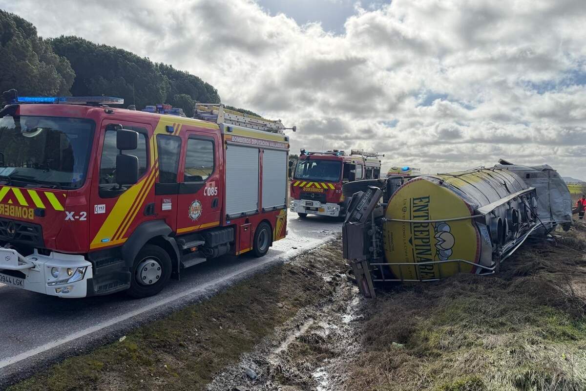 Un nuevo accidente de tráfico se cobra la vida de una persona en la provincia de Valladolid. Un hombre de 42 años de edad ha fallecido en la mañana de este sábado 31 de enero tras volcar con un camión cisterna a su paso por la carretera VA-302, a la altura de la localidad vallisoletana de Aldeamayor de San Martín.