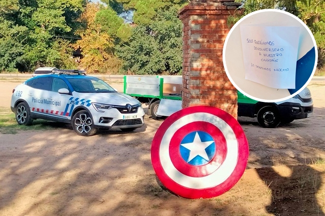Una patrulla del Cuerpo Municipal de Policía acudió a la Cañada Real y localizó el escudo del Capitán América aparecido esta mañana junto al Colegio Nuestra Señora del Pilar de Valladolid. Además, pegado al escudo los responsables de este acto vandálico han dejado una 'graciosa' nota de disculpa, diciendo que "solo queríamos devolvérselo a nuestro Capitán, lo sentimos mucho". Desde la Policía Municipal recuerdan que a pesar de este gesto 'divertido' que han pretendido hacer los autores del hurto, la práctica cometida corresponde a un acto vandálico que "no son una broma", y por tanto, tendrán que asumir consecuencias una vez sean identificados y localizados.