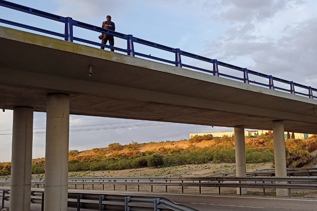 Inmediatamente se trasladaron efectivos policiales al lugar, donde ya se encontraba una ambulancia, comprobando que se trataba de la persona sobre la que se había denunciado su desaparición. Los agentes actuaron de manera rápida y coordinada cortando el tráfico de ambas vías para asegurar el lugar, evitando que la persona pudiera saltar al vacío.