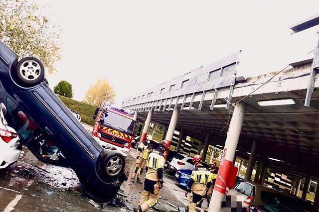 Susto esta mañana en el Hospital Río Hortega de Valladolid cuando un turismo ha caído desde la planta superior a la parte inferior del parking del centro. Al parecer, una mujer de 66 años chocó con un muro del aparcamiento y se despeñó hasta la planta inferior desde varios metros chocando contra otro turismo aparcado sin ocupantes, según informan los servicios sanitarios a Valladolid Plural.