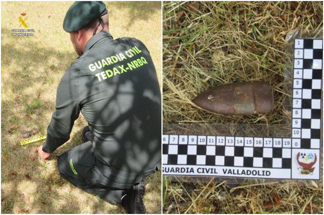 La Guardia Civil de Valladolid ha destruido un proyectil de artillería hallado en una tierra de labor en la localidad de Cogeces del Monte. Los agentes de la Benemérita procedieron a la destrucción controlada del artefacto, de calibre 37 milímetros y que conservaba íntegra su carga explosiva, lo que suponía un riesgo significativo. El hallazgo fue realizado por un vecino que se encontraba realizando trabajos agrícolas en una finca del municipio vallisoletano de Cogeces del Monte.