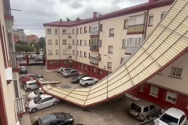 VÍDEO | El viento arranca de cuajo el tejado de un edificio en la calle Recondo: las consecuencias del temporal Kirk en Valladolid