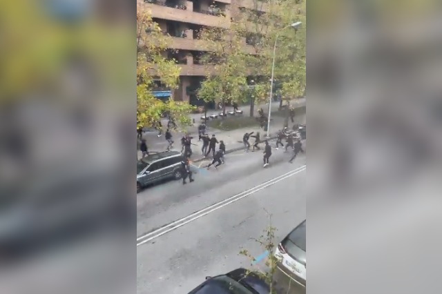 Como consecuencia, se han producido disturbios entre los aficionados ultras de ambos equipos obligando a que la Policía Nacional acudiese al lugar de los hechos para frenar los actos violentos que se estaban produciendo. Durante los enfrentamientos se ha visto a hinchas de uno y otro equipo con palos, tirando mobiliario urbano y a puñetazo limpio contra sus adversarios, lo que ha provocado la intervención policial. Por el momento, se desconoce si hay detenidos y heridos, aunque sí hay que señalar el importante revuelo que se ha generado entre los vecinos de la zona que presenciaban perplejos lo que estaba sucediendo.