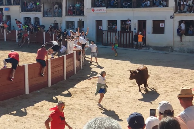 La mujer a paso lento puso llegar a un refugio después de que el toro estuviera a escasos metros de ella, y simplemente al astado no le llamó la atención que la mujer se cruzara por su camino, además con cierta dificultad para caminar fruto también de la tensión del momento. Las imágenes se están haciendo virales en las redes sociales y los vecinos de Peñafiel y muchos de ellos coinciden en lo mismo, en que ha sido "el milagro de San Roque" para que a esta mujer no le pasara nada. Es más, en otras circunstancias más complejas, seguramente se hubiera producido una grave cogida. En el momento en el que el toro hizo ese salto en la Plaza del Coso tan típico en los festejos de Peñafiel durante sus Fiestas patronales, los participantes y asistentes a la suelta comenzaron a gritar y a correr y muchos de ellos, ya a refugio, observaron a la mujer frente al novillo y comenzaron a llevarse las manos a la cabeza pensándose que podría ocurrir lo peor.