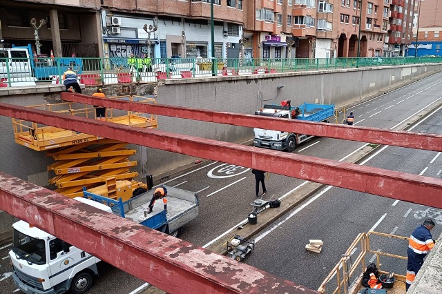 Este lunes han comenzado los trabajos de la sustitución de dos vigas del túnel de la Plaza Circular, ya que una de ellas fue derribada y otra dañada este verano. Las infraestructuras se sitúan entre los muros del acceso al túnel de la plaza Circular por el lado del Paseo de San Isidro, y las labores de reparación han obligado al corte total del túnel al tráfico rodado, puesto que afectan a los cuatro carriles.