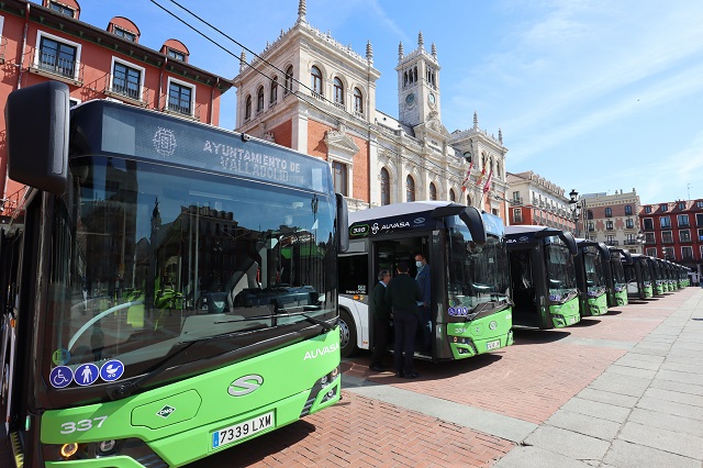 La incorporación de 15 nuevos autobuses supone el mayor impulso del transporte público desde que en 2020 comenzó el plan de renovación en AUVASA. La inversión de más de 5,6 millones de euros va a procurar la modernización de la flota de la empresa municipal, que se completará hasta 2024 con 57 nuevos vehículos. El alcalde de Valladolid, Oscar Puente, ha presentado los nuevos autobuses en la Plaza Mayor junto con el concejal de Movilidad y Espacio Urbano, Luis Vélez, y el gerente de AUVASA Álvaro Fernández. También han asistido representantes de SOLARIS, empresa adjudicataria del acuerdo marco de adquisición de autobuses propulsados por gas natural comprimido y suministrador de los autobuses SOLARIS URBINO 12 CNG.