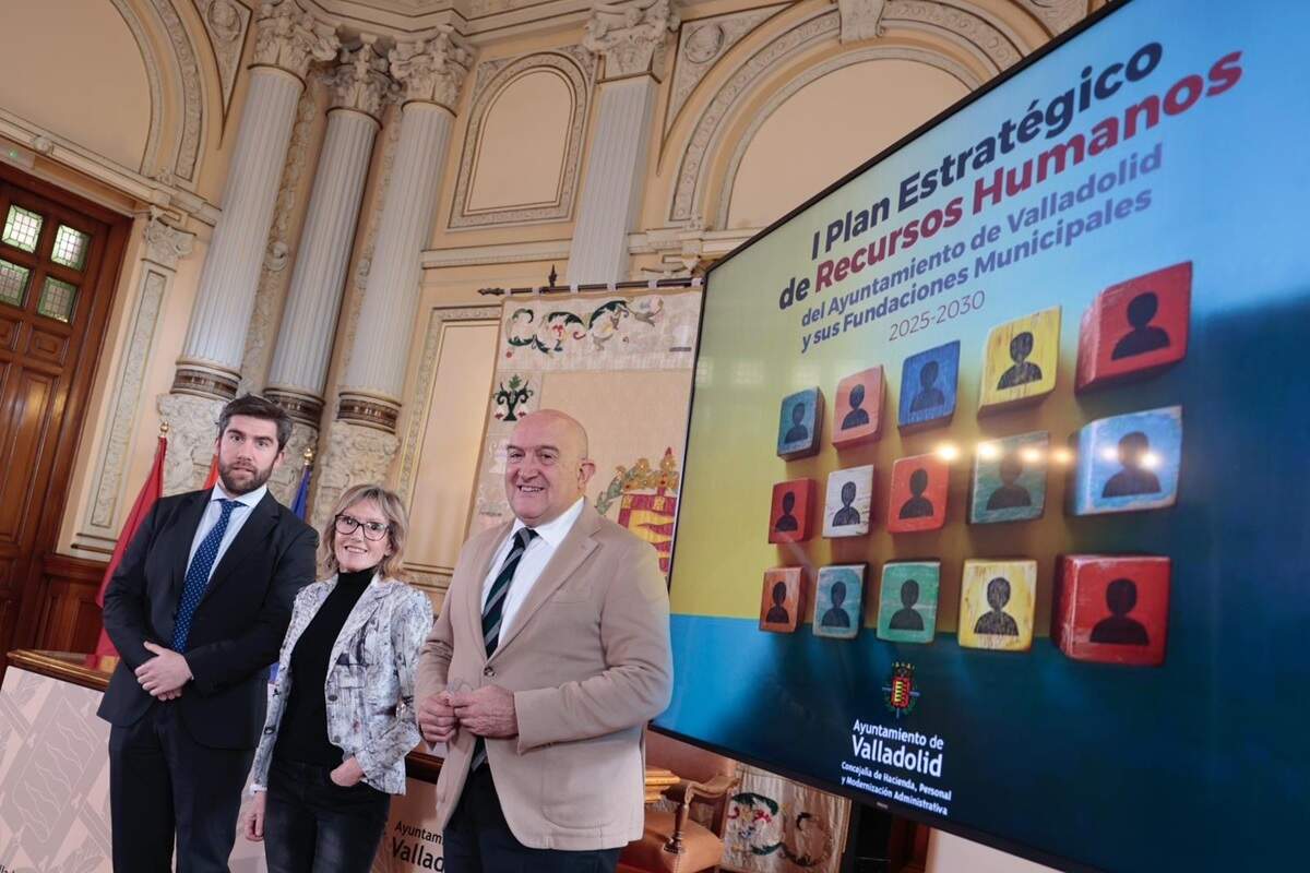 El Ayuntamiento de Valladolid impulsa el I Plan Estratégico de Recursos Humanos hasta el año 2030. Este plan funciona como una hoja de ruta para modernizar la gestión del personal municipal y reforzar la calidad de los servicios públicos que se prestan a la ciudadanía. Así lo ha presentado este lunes el alcalde Jesús Julio Carnero, acompañado del concejal de Hacienda, Personal y Modernización Administrativa, Francisco Blanco, para que a través de este plan de medidas se sitúe a las personas en el "centro" de la organización municipal.