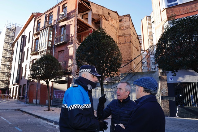 "Por tanto, las acciones van a ser inmediatas. Este martes a las 08.00 horas de la mañana con una grúa de gran tonelaje se empezará a hacer el derribo por parte de una empresa especializada con una cesta y desde arriba garantizando la seguridad tanto del personal de la obra como del recinto y el ámbito que puede ser afectado en caso de que se produzca alguna caída más", ha agregado. Entre las medidas que se han tomado desde la Policía Municipal de Valladolid, el concejal de Salud Pública y Seguridad Ciudadana, ha mencionado la instalación de vallado y protección de la zona afectada. "Desde el primer momento que se nos comunica la circunstancia que está ocurriendo en el edificio, lo primero que hacemos es acordonar la zona, establecer un perímetro, la Policía Municipal estableció una guardia para que nadie pudiera acceder a esta zona complicada", expresó. Se ha ampliado la seguridad "porque tenemos al lado un colegio y hemos actuado para prevenir que afecte al acceso al centro", ha explicado el edil Alberto Cuadrado. También, según ha manifestado, se ha intervenido para sacar unos vehículos estacionados en un garaje cercano.