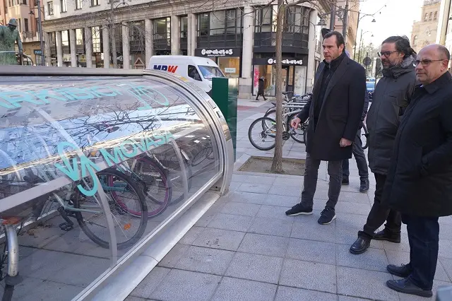 El alcalde de Valladolid, Óscar Puente, y el concejal de Movilidad y Espacio Urbano, Luis Vélez, han visitado hoy el parkibici de la calle Doctrinos para comprobar el funcionamiento del servicio: "Parkibici es un paso más en la estrategia de movilidad ciclista de la ciudad que colocará a Valladolid en los máximos estándares de calidad de las ciudades europeas".