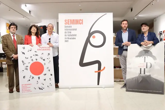 El alcalde, Óscar Puente, ha dado a conocer los carteles anunciadores de la próxima edición de SEMINCI en una presentación en la que ha estado acompañado por la concejala de Cultura y Turismo, Ana Redondo, y el director del Festival, Javier Angulo, además del gerente de la Fundación de Cultura, Carmelo Irigoyen. La propuesta del diseñador madrileño José Luis Segovia titulada 'Espectador expectante' ha sido elegida como imagen oficial de la 67 edición de la Semana Internacional de Cine de Valladolid, que se celebrará del 22 al 29 de octubre de este año.
