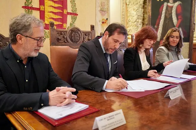 Firmado el protocolo entre el Ministerio de Justicia y el Ayuntamiento de Valladolid para la construcción de la Ciudad de la Justicia entorno del colegio de El Salvador. La Subsecretaria de Justicia, María Sánchez Hernández, ha firmado el documento con el alcalde, Óscar Puente, acompañado por el concejal de Planeamiento Urbanístico, Manuel Saravia. Al acto celebrado en la Casa Consistorial entre las administraciones central y local ha acudido también la delegada del Gobierno en Castilla y León, Virginia Barcones.