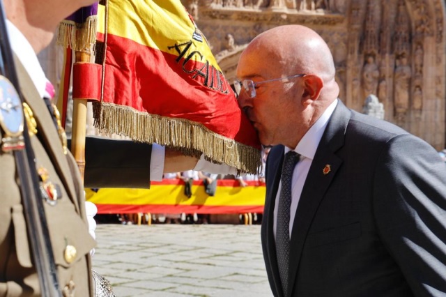 El regidor Jesús Julio Carnero, que estuvo acompañado por la primera teniente de alcalde, Irene Carvajal, la subdelegada del Gobierno en Valladolid, Alicia Villar, así como concejales y diputados provinciales, indicó que poder acoger hoy este solemne acto supone "un motivo de alegría y de compromiso con la enseña nacional y con España", y más aún en "una plaza histórica que acoge hechos significativos de la vida de Valladolid, y sobre todo, de la vida de España".