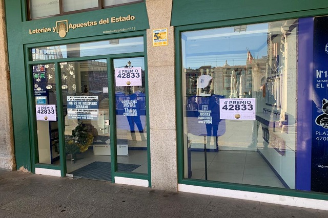 La suerte de la lotería de Navidad volvió a sonreír a Valladolid con un cuarto y quinto premio. Precisamente, una de las administraciones más reconocidas de la ciudad, 'El Gato Negro', ubicada en la Plaza Mayor ha sido la encargada de vender un décimo del cuarto premio con el número 42.833. El lotero, Julio Díez, ha atendido a Valladolid Plural para festejar este premio en una jornada cargada de emociones "encontradas".
