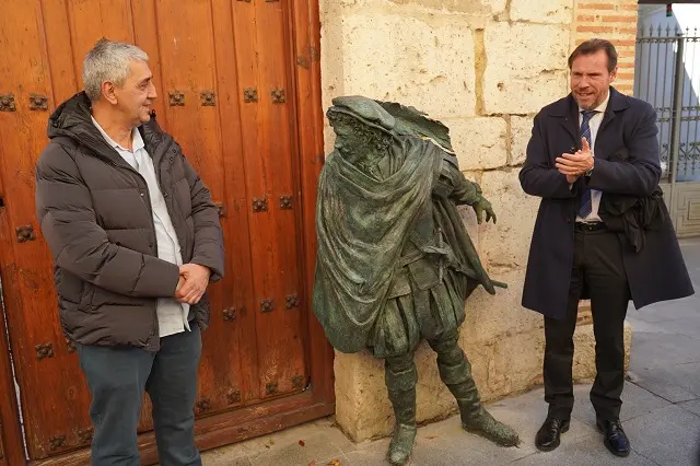El alcalde de Valladolid, Óscar Puente, y la concejala de Cultura y Turismo, Ana Redondo, han inaugurado esta mañana una nueva escultura pública urbana dedicada al personaje más universal del gran poeta vallisoletano José Zorrilla. La pieza ha sido promovida por la Fundación Municipal de Cultura y, titulada 'Don Juan Tenorio, embozado', es obra del escultor e imaginero vallisoletano Miguel Ángel Tapia. Está realizada en bronce a escala humana de 1,80 metros y representa la figura del caballero don Juan Tenorio, en actitud vigilante y acechante junto al portón que da acceso al jardín romántico de la Casa de Zorrilla, en la calle Fray Luis de Granada 1.