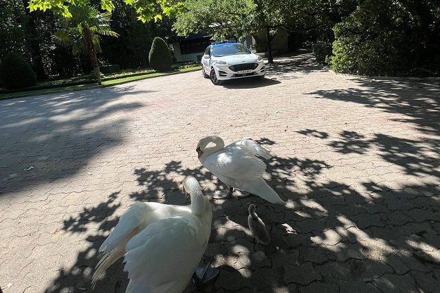 Las aves buscaban un cobijo a la sombra de los árboles debido a las alturas temperaturas que se están produciendo durante este inicio de semana en la capital del Pisuerga. Pero el precioso paseo de estos blancos cisnes iba a obligar a una patrulla de la Policía Municipal de Valladolid a intervenir para que volvieran a su hábitat. Los agentes escoltaron a los dos cisnes adultos y a su cría hasta el interior del recinto, y así evitar que su vida corriera peligro. Una divertida anécdota que ha permitido que los cisnes volvieran sanos y salvos a su casa, como así lo han transmitido los efectivos policiales a través de sus redes sociales con una preciosa instantánea en el interior del Campo Grande.