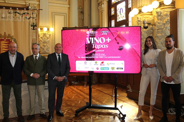 Tras el éxito del pasado año en la primera edición de 'Vino + Valladolid' en la Cúpula del Milenio, la ciudad da un paso más y presenta una nueva cita al aire libre que pondrá de manifiesto tanto la excelencia vitivinícola de la tierra como la capitalidad mundial que ostenta Valladolid en referencia a las tapas. Así lo han dado hoy a conocer el alcalde de Valladolid, Jesús Julio Carnero, la concejala de Turismo, Eventos y Marca Ciudad, Blanca Jiménez, el presidente del Consejo Regulador de la DO Cigales, Pablo Saéz, el presidente de la Asociación Provincial de Empresarios de Hostelería de Valladolid, Jaime Fernández, y el representante de Planeta Desierto, Francisco Javier Garrido. El evento, que se inserta en el amplio abanico de actividades organizadas con motivo de las Fiestas de San Pedro Regalado 2025, y forma parte de la programación del festival Cosquín Rock España que se celebrará el próximo 30 de agosto en el recinto Pingüinos Arena, contará además con una programación musical, sesiones magistrales y masterclass de vino y encuentros de creaciones sonoras.