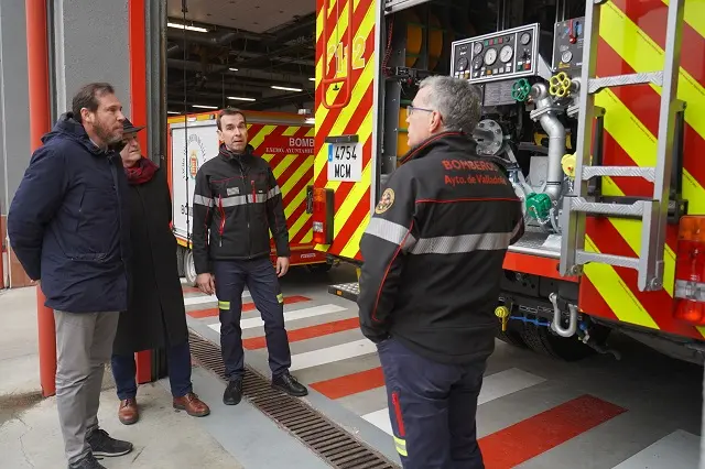 El nuevo camión del Servicio de Bomberos, con capacidad para 11.500 litros de agua y dotado con la última tecnología, convierte a Valladolid en la única ciudad del país con este tipo de vehículos. Así lo han confirmado los responsables de la empresa adjudicataria en la presentación de los nuevos medios. Es uno de los nuevos servicios que el alcalde, Óscar Puente, ha presentado este martes en el Parque de Las Eras, acompañado por el concejal de Salud Pública y Seguridad Ciudadana, Alberto Palomino, y el jefe del Servicio de Extinción de Incendios, Salvamento y Protección Civil del Ayuntamiento de Valladolid, Javier Reinoso.