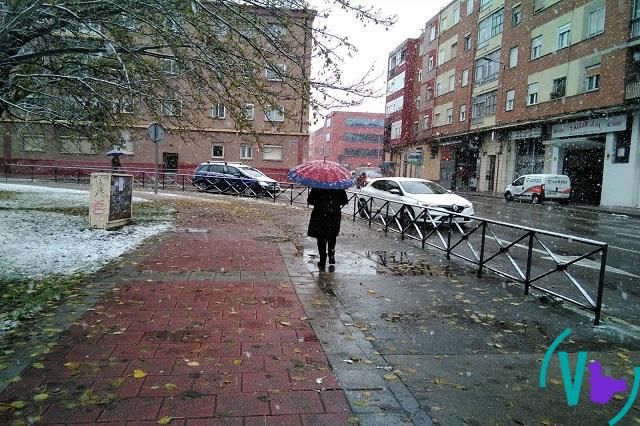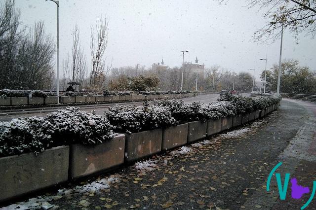 La nieve apareció esta mañana ante la sorpresa de los vallisoletanos. Los primeros copos de nieve caían en la capital vallisoletana sobre las 09.00 horas después de varios días de intensas lluvias en pleno otoño.