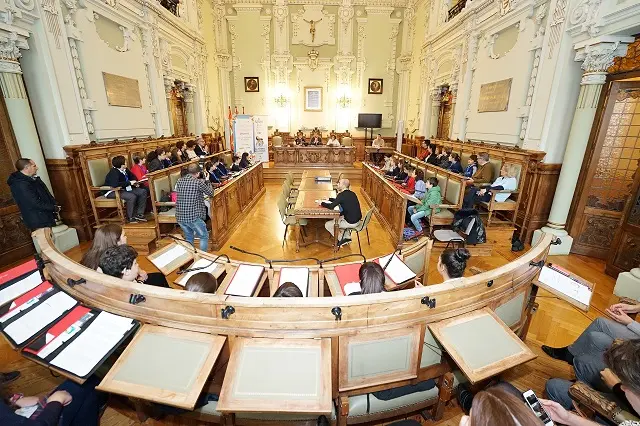 La corporación municipal del Ayuntamiento de Valladolid, con los grupos municipal del PSOE y Valladolid Toma la Palabra, presentan una moción en el Pleno para condenar y exigir "responsabilidades políticas por la difusión y justificación de un mensaje a través de Twitter que incita a tomar el Ayuntamiento y acabar con el alcalde del estilo Mussolini".