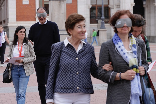 Con motivo del Día Internacional de Concienciación sobre el Ruido, que se celebra cada año el último miércoles de abril, la Concejalía de Medio Ambiente del Ayuntamiento de Valladolid ha celebrado hoy la actividad 'Paseo Sonoro', que se ha realizado con el objeto de concienciar del ruido presente en la cuidad. Una cita que ha contado con alumnos de 2º de Grado Medio de Instalación de Telecomunicaciones del Instituto Ribera de Castilla, quienes han formado grupos de tres, uno con los ojos tapados, otro de lazarillo y un tercero que ha ido anotando. En el caso de la persona que iba con los ojos cerrados ha ido describiendo al resto lo que oía. Asimismo, se han realizado tres paradas, en la calle Santiago, la Plaza de Zorrilla y el Campo Grande, para evaluar estos emplazamientos.