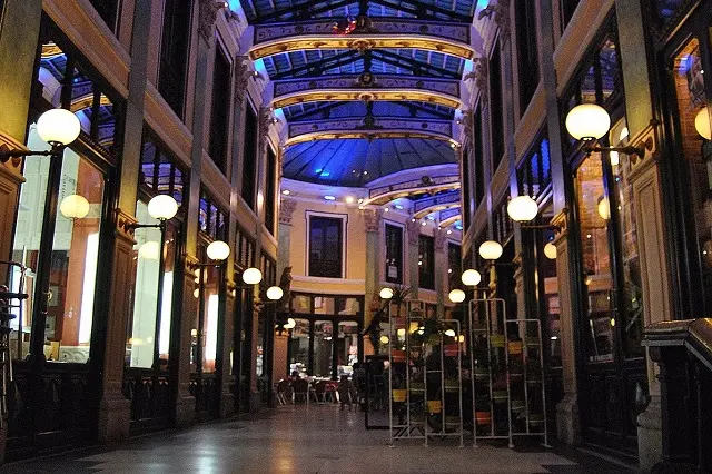 Entrar en este pasaje te trasladará a un café parisino del siglo XIX: se construyó en esta época y, precisamente, imitaba las grandes galerías comerciales europeas, en especial las de la vecina Francia. Puedes acceder a través de uno de los primeros portales de la calle Fray Luis de León o por la plaza del Salvador. Te recomendamos que lo visites de día… y que repitas por la noche, cuando su imagen cambia por completo gracias a una cuidada iluminación ornamental.