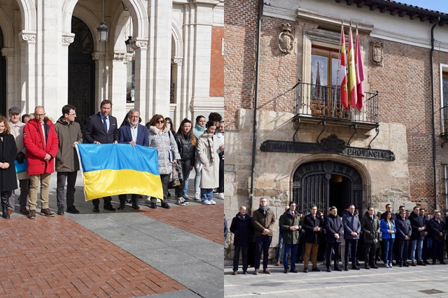 Por otro lado, la Diputación de Valladolid también se concentró este viernes con 5 minutos de silencio en solidaridad con la población ucraniana y sus millones de desplazados. Esta convocatoria estuvo encabezada por el presidente provincial, Conrado Íscar, y el resto de diputados y grupos políticos. La concentración que se llevó a cabo a las puertas del Palacio de Pimentel también sirvió para mandar un mensaje para urgir el final del conflicto bélico y el restablecimiento de la paz y la legalidad democrática internacional.