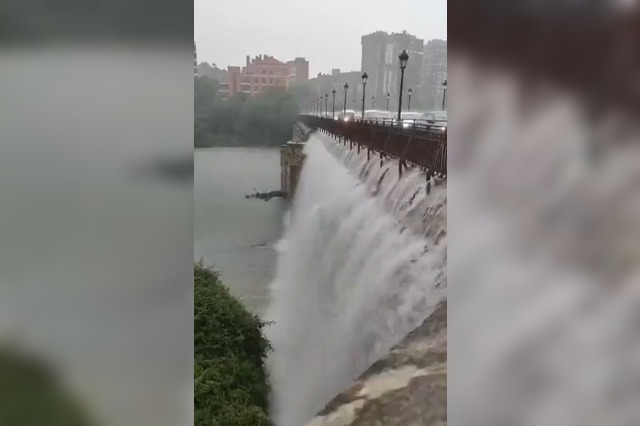 VÍDEO | Una espectacular cascada cae desde el Puente Mayor al Pisuerga durante el aguacero: "No he visto esto en Valladolid en mi vida"
