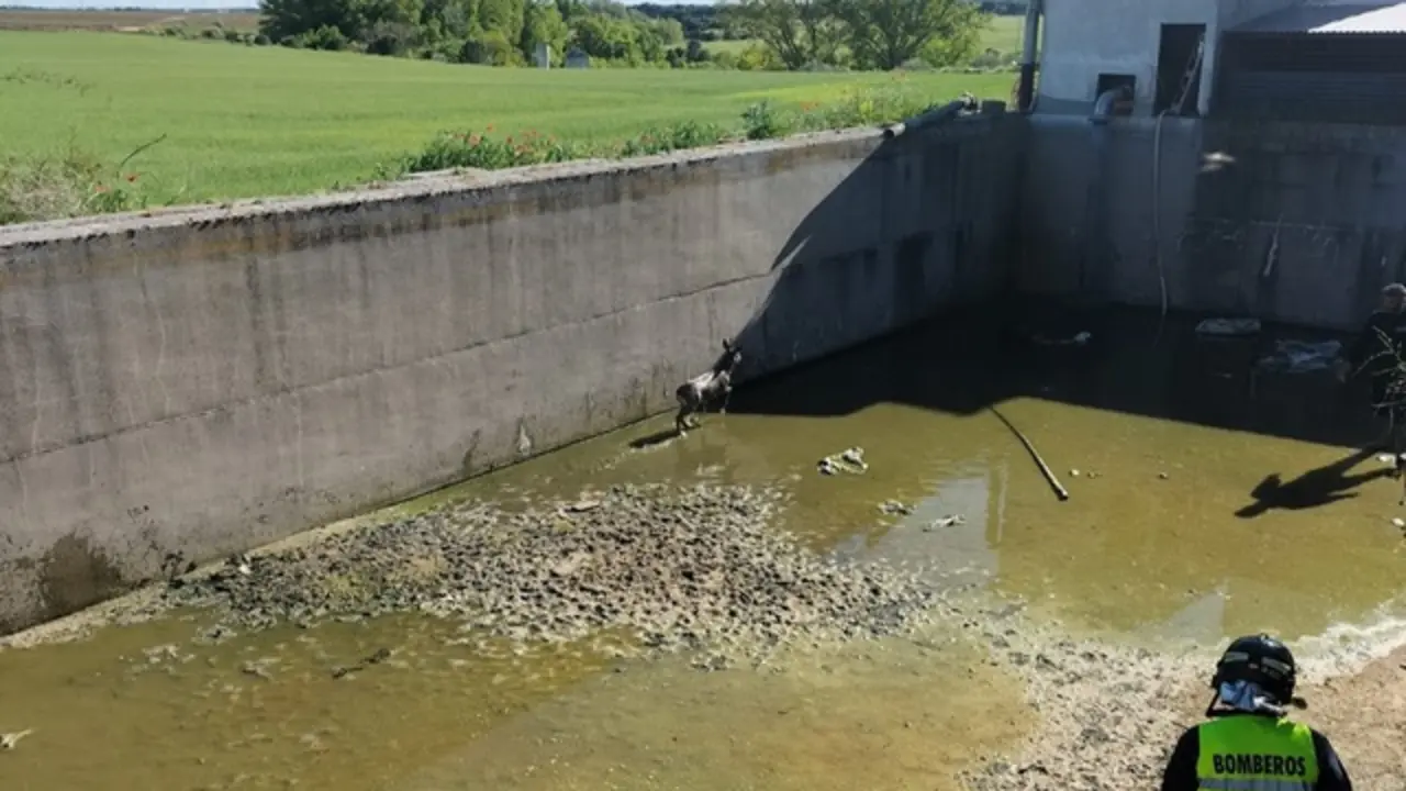 Los Bomberos rescatan a tres corzos caídos en una balsa de riego en un pueblo de Valladolid C. A. 22/04/24 | 8:00