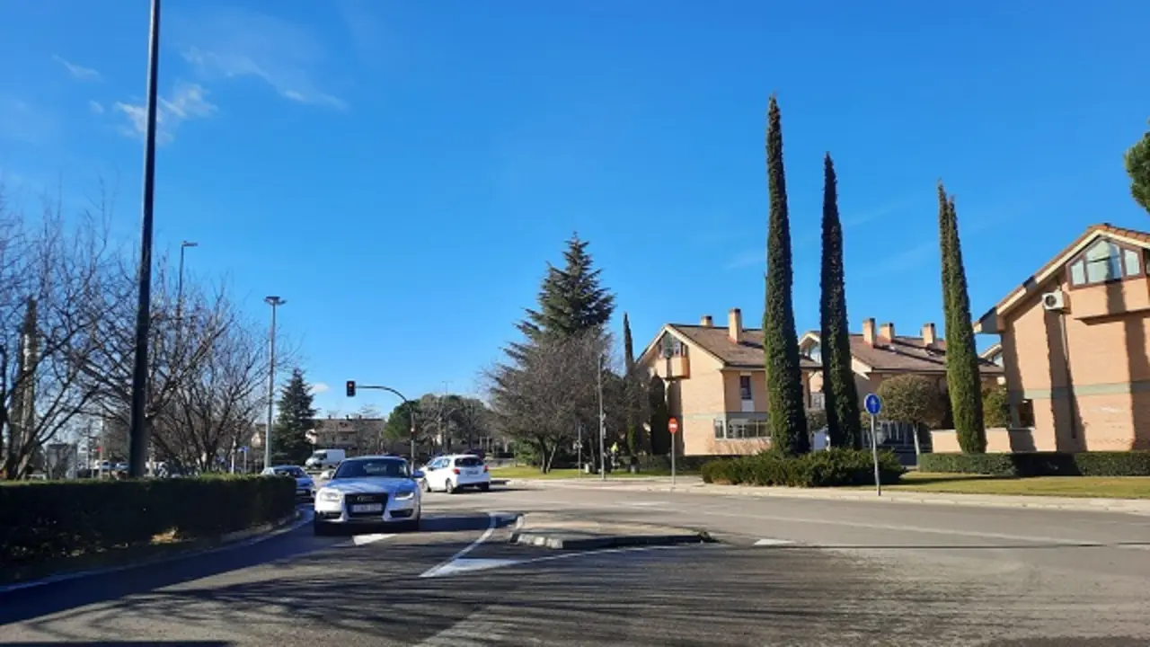 Un joven choca con su coche contra un bordillo, una señal y acaba volcado en la rotonda de la VA-30 entre Valladolid y La Cistérniga