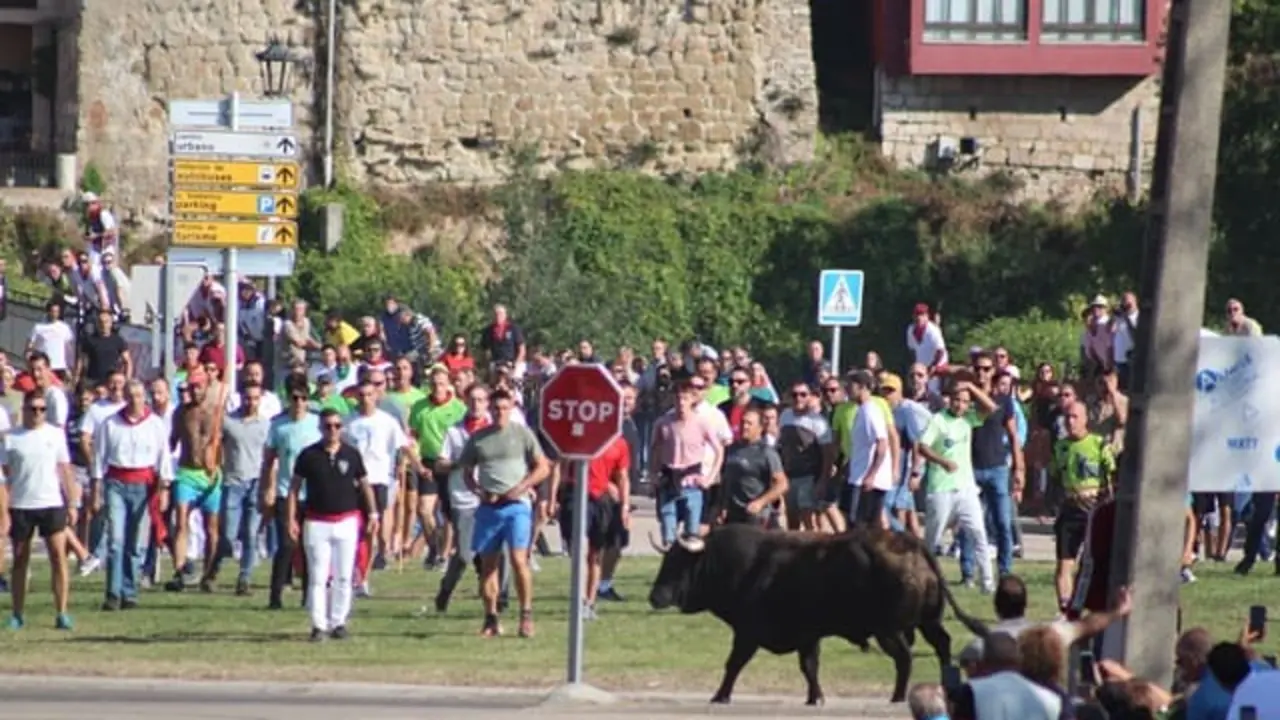 VÍDEO | Un toro derriba una estructura durante un encierro en Medina del Campo y arrolla a varias personas