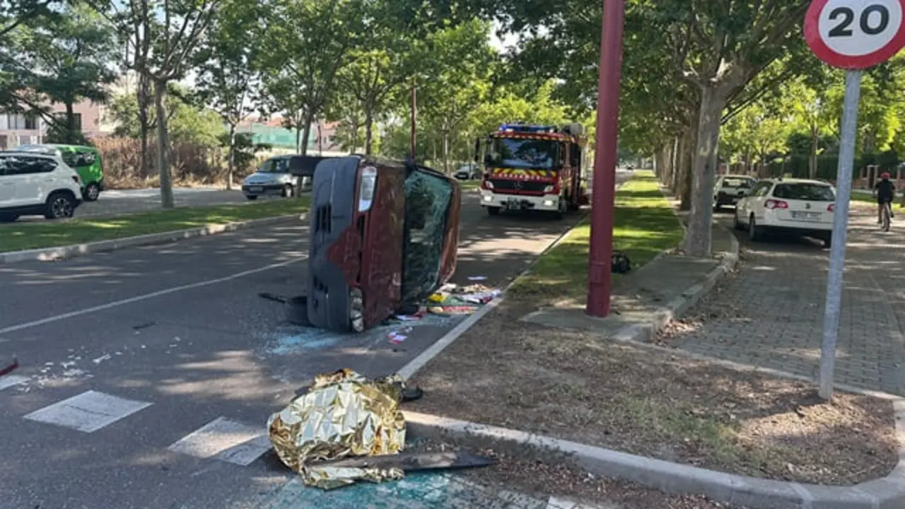 Herido un hombre de 58 años tras una colisión entre dos turismos en la rotonda de entrada a La Cistérniga