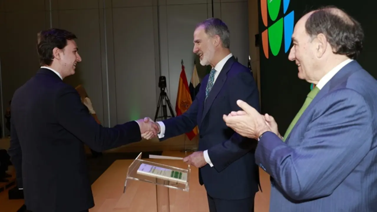 Felipe VI entrega una Beca Iberdrola a un joven ingeniero eléctrico afincado en Valladolid, que ya trabaja como técnico de Desarrollo de Red en la ciudad
