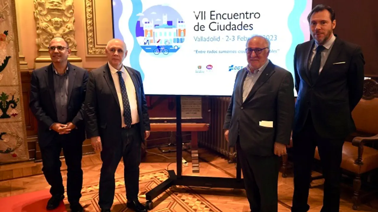 El alcalde de Valladolid, Óscar Puente, junto con el concejal de Movilidad y Espacio Urbano, Luis Vélez, la concejala de Medio Ambiente y…