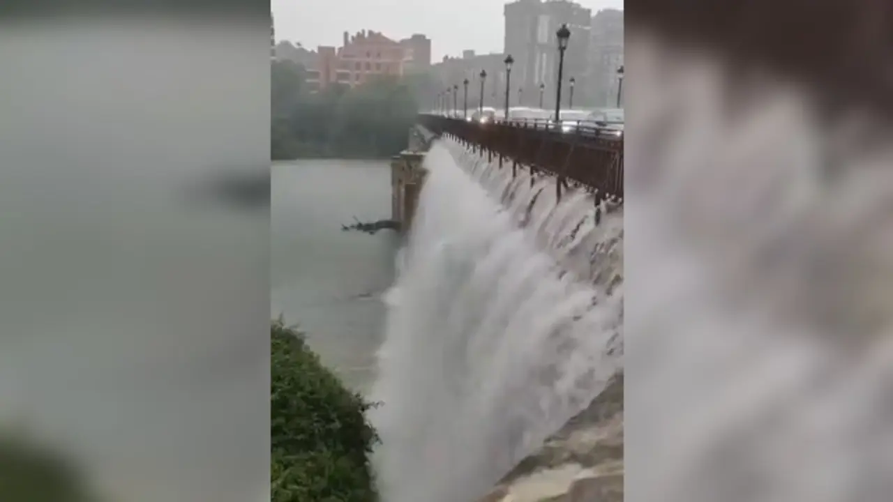 VÍDEO | Una espectacular cascada cae desde el Puente Mayor al Pisuerga durante el aguacero: "No he visto esto en Valladolid en mi vida"